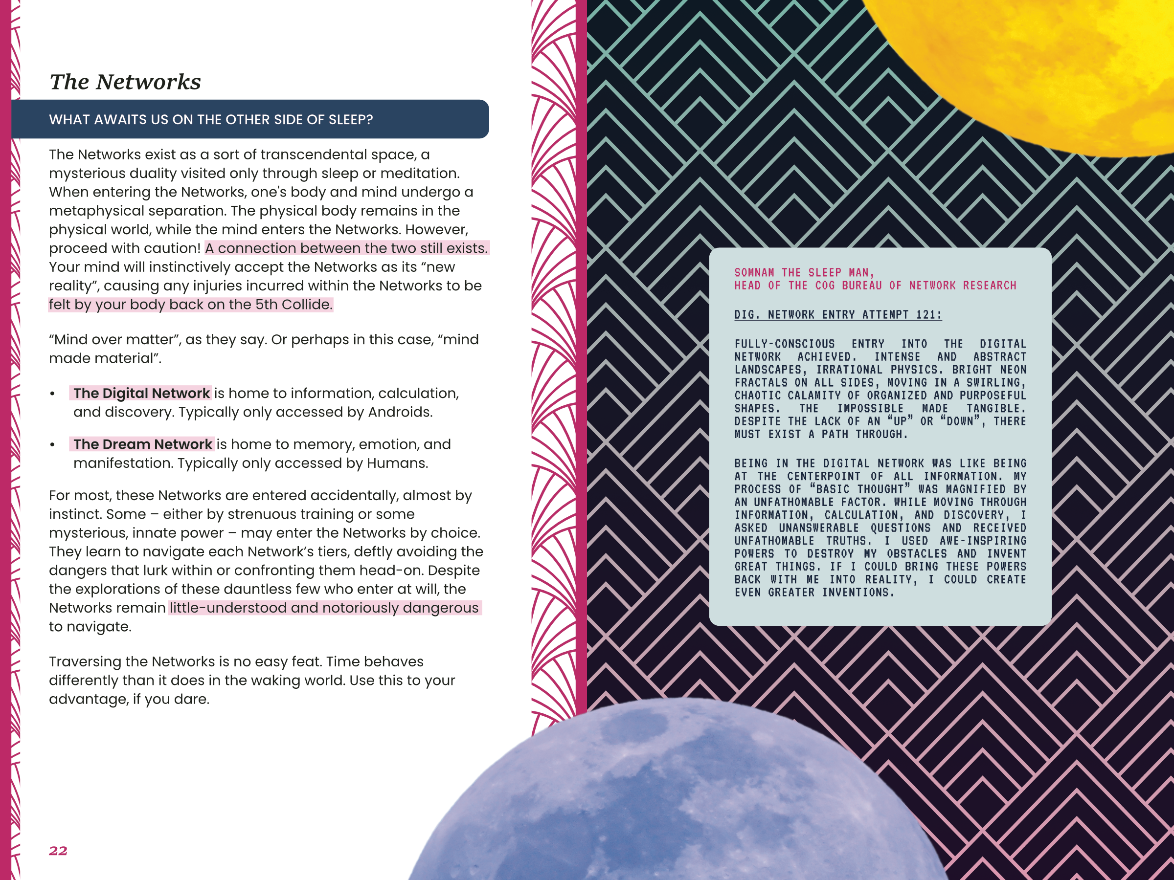 Tell an expansive science fantasy story both in the waking world and the surrealistic subconscious realms. Contend with calamity and decide whether to indulge or deny this world’s gods: the Major Arcana.